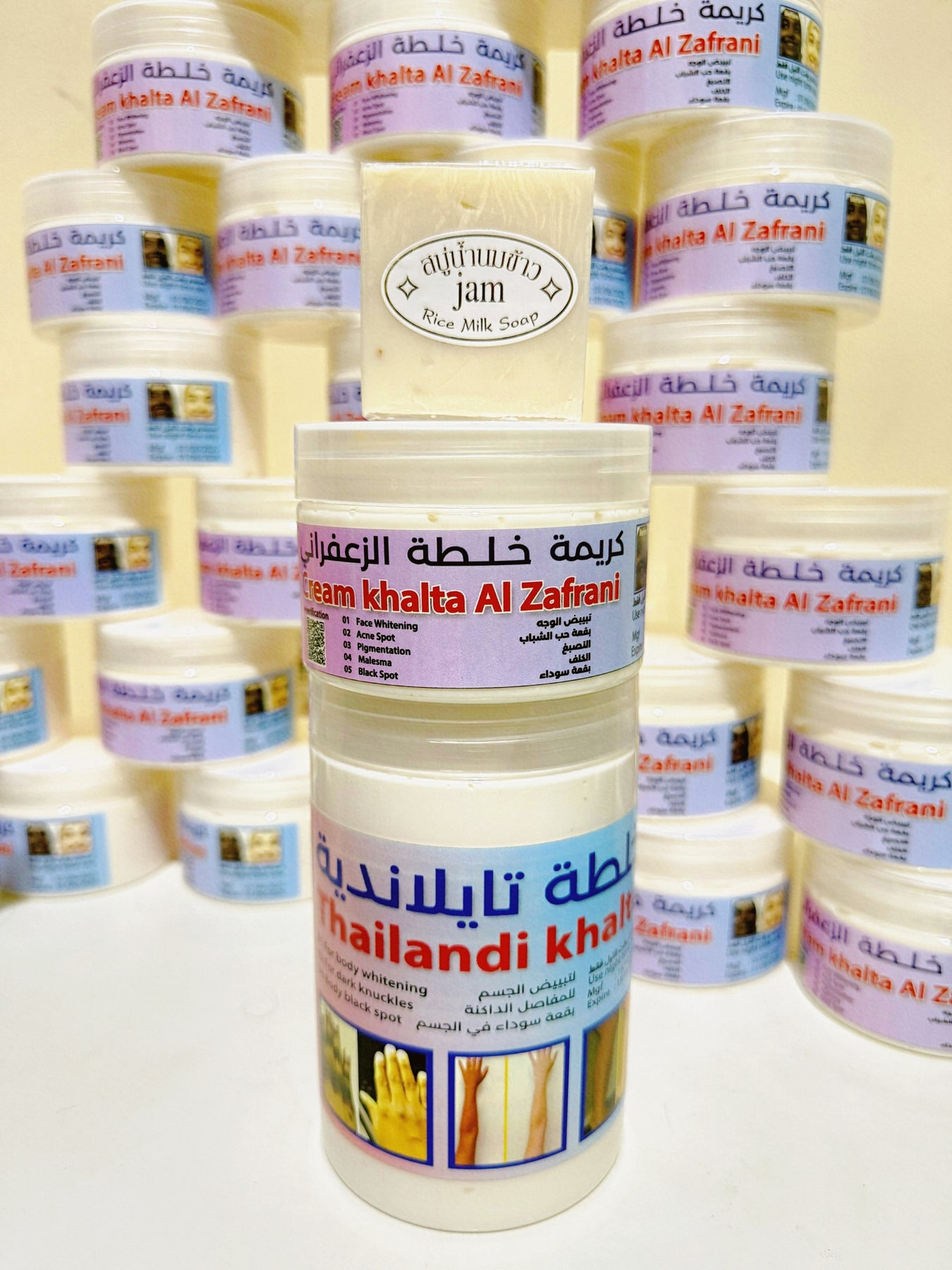 Regular price Dhs. 280.00 Sale price Dhs. 220.00🌿 Cream Khalta, Rice Milk Soap & Body Lotion – 3-in-1 Whitening & Skincare Combo